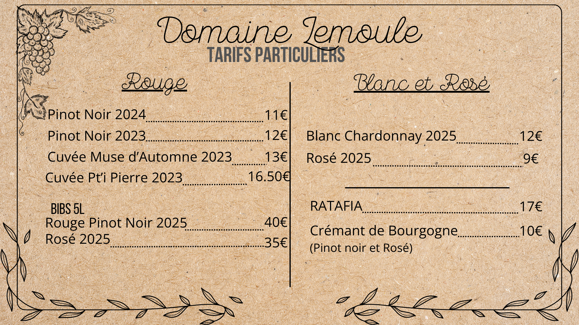 Tarifs mis à jour au 02/03/2026 et applicables jusqu’au 30/06/2026.